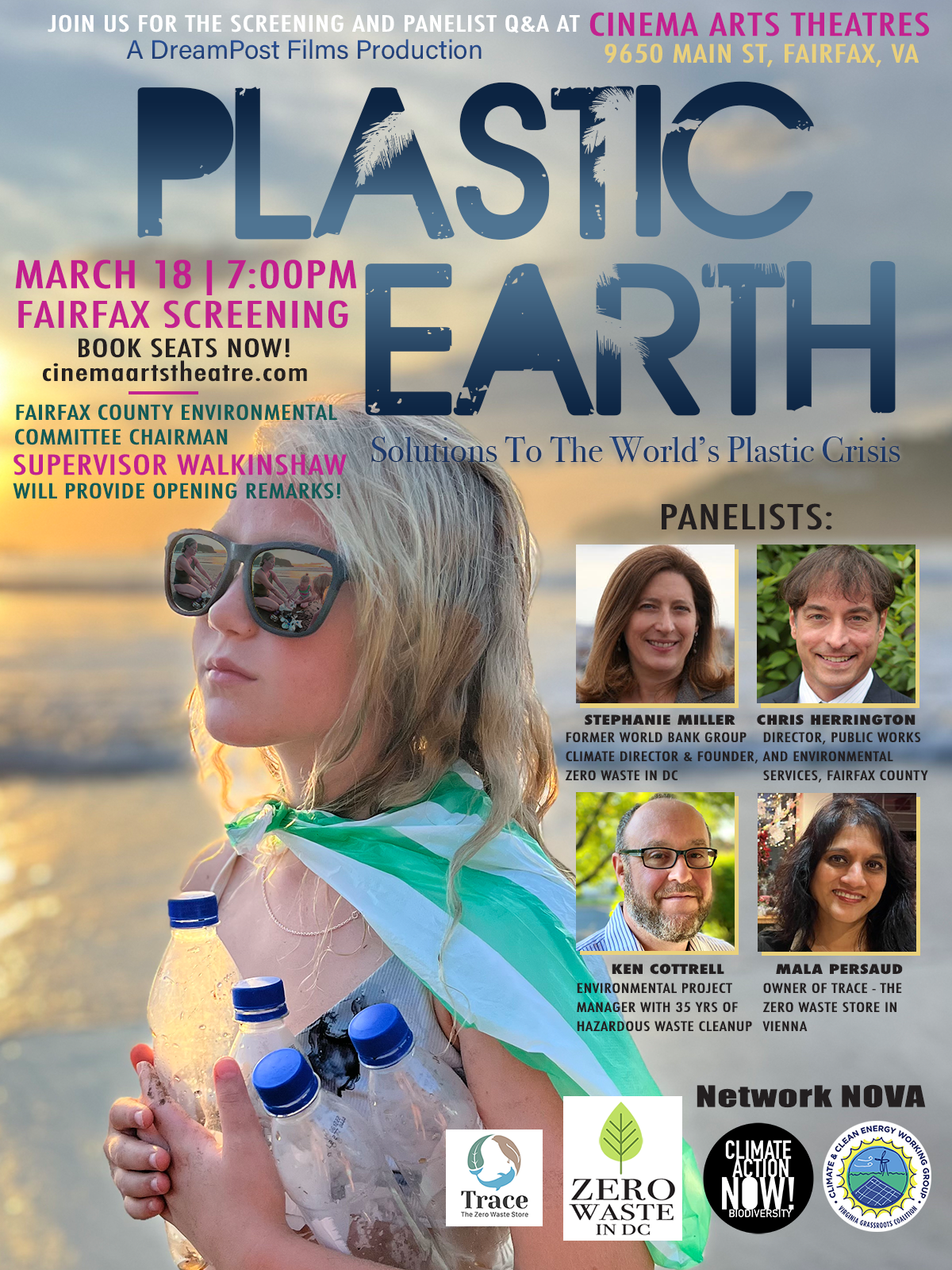 Come join us for another exciting in-person event at Cinema Arts Theatres in Fairfax, VA! We are thrilled to present the screening of “PLASTIC EARTH,” a solutions-based film that will leave you feeling hopeful.